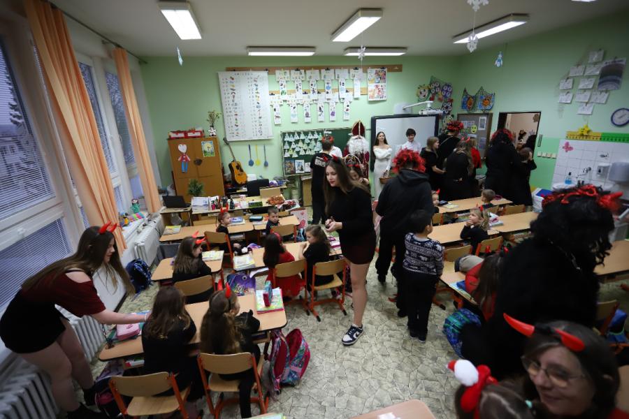 Do školy i školky dnes přišel Mikuláš s doprovodem. Všichni naštěstí byli hodní, takže čerti odešli s prázdnou.